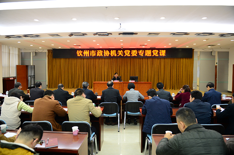 图为市政协机关党委书记黄光发为机关全体党员上党课。邓吴宇 摄