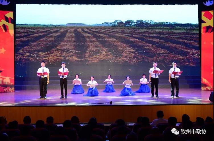 三是参加庆祝建党97周年专场演出。市直属机关工委举办“钦州党旗红 机关走前头”第一书记的扶贫故事暨钦州市直机关党组织庆祝中国共产党成立97周年文艺晚会,政协机关党委积极创作了反映第一书记奋斗在基层和扶贫一线的诗朗诵《因为您们,所以幸福——第一书记礼赞》并登台演出,在反映现实而丰富多彩的背景衬托下,声情并茂的朗诵和舞蹈歌颂演绎了第一书记肩负使命和责任访贫问苦、帮扶群众、助力发展和共享成果的点点滴滴,引起了台下观众的热烈反响和共鸣。