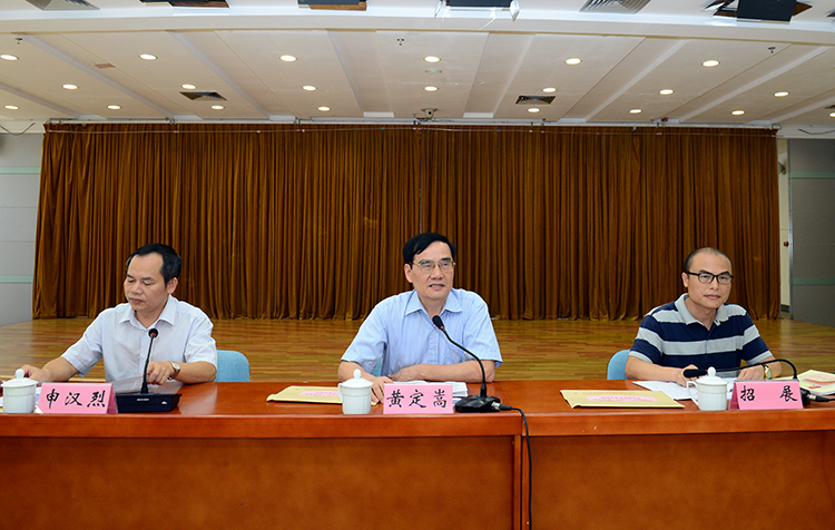 7月26日,钦州市政协副主席黄定嵩(中)向媒体记者介绍政协工作情况。邓吴宇 摄