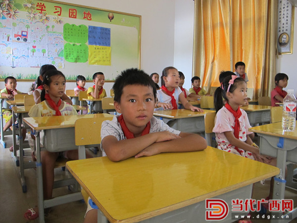 当代广西网讯(记者 范立强)白墙、青瓦、黄色廊柱,在蓝天白云的映衬下,钦州市钦南区久隆镇平新小学大坡坪教学点显得明丽又祥和。五间宽敞的教室一字排开,背后是一排排绿树,学生正跟着多媒体在唱歌,声音时大时小,偶尔还会跑调,却始终透着兴奋。