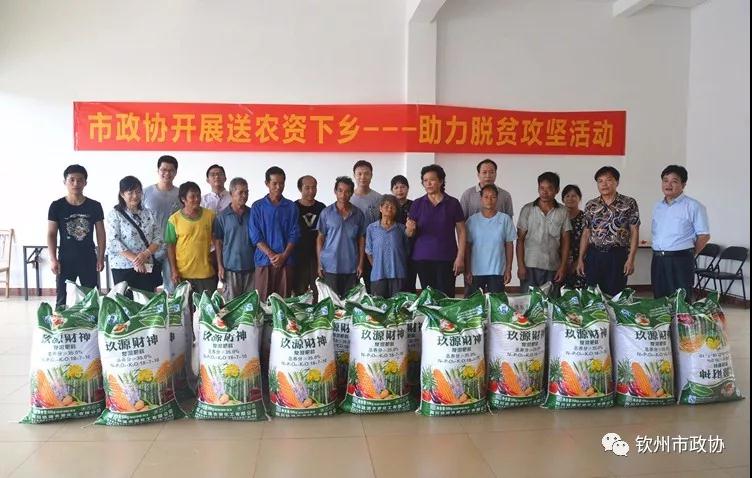 7月6日,市政协副主席罗志芳带领市政协文教体卫委全体干部到钦北区新棠镇南忠村开展“送农资下乡–助力脱贫攻坚”活动,并走访脱贫帮扶对象。