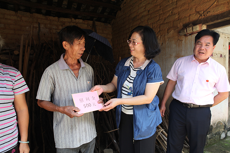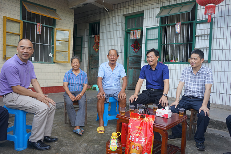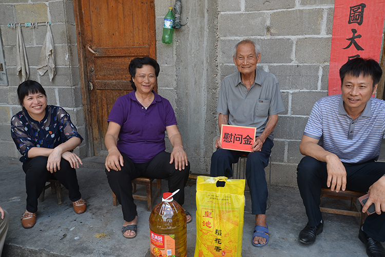 7月2日,市政协副主席罗志芳(左二)到钦北区新棠镇南忠村慰问生活困难老党员。
